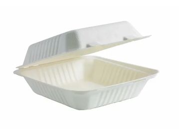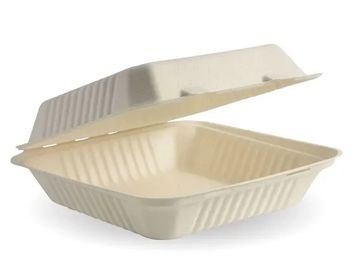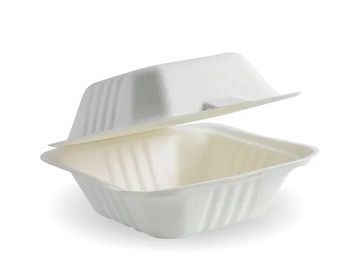 Made from renewable sugarcane pulp, our plastic-free 6x6" white bagasse clamshells are an eco-friendly alternative to plastic takeaway containers. Bulk pack of 500 (15x15x8cm)